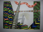 1989tek. op papier, inkt en kleurpotlood. abstact.