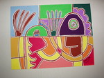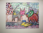 1989tek. op papier, inkt en kleurpotlood, abstract.