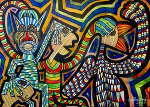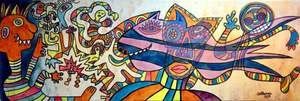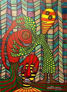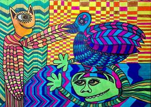 2021inkt div. stiften. acrylvarf op doek.